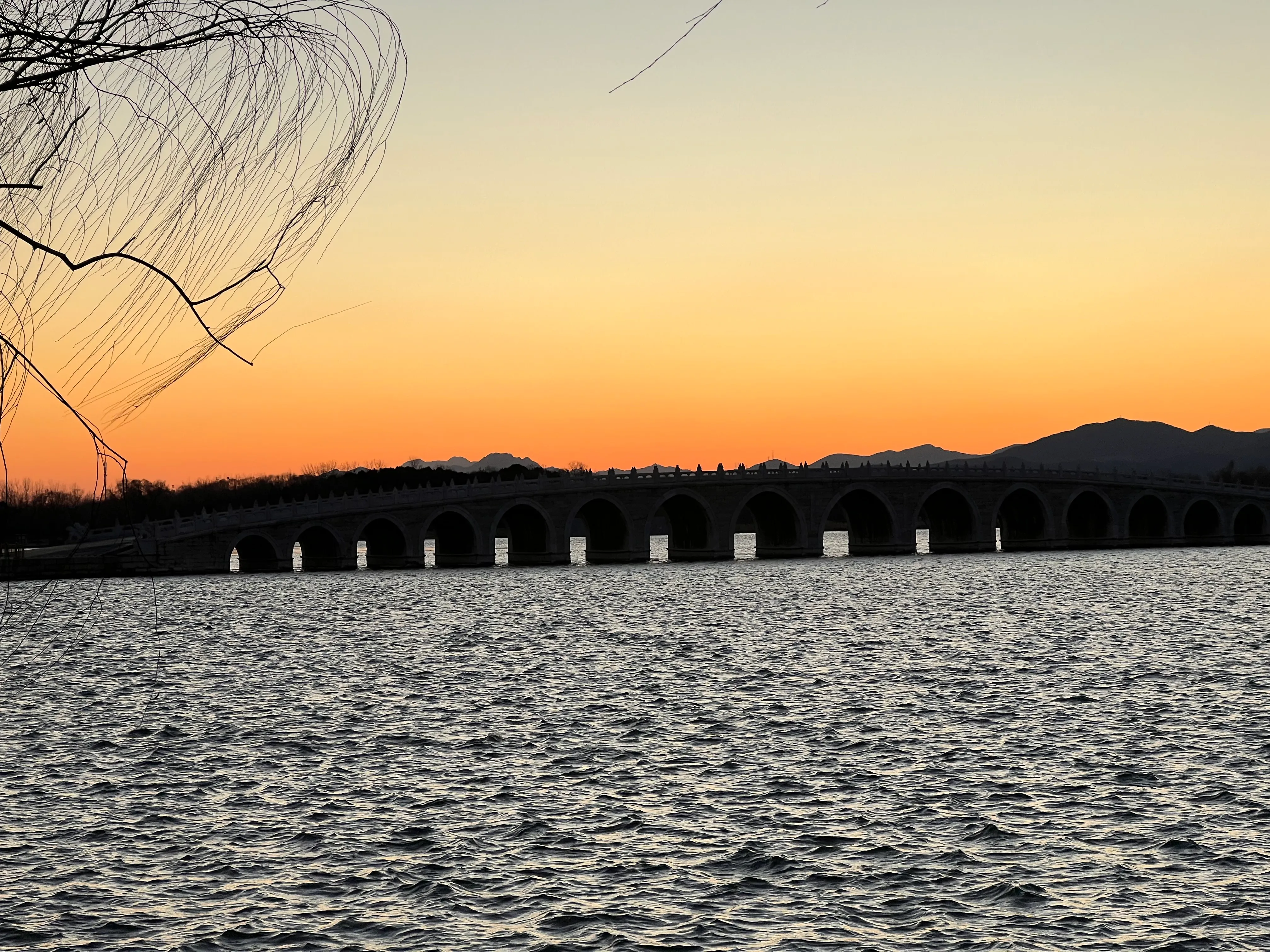 圣诞节当天,和朋友去颐和园看冬至我没看到的金光穿十七孔桥桥洞。桥洞没我想象中那么“金”,反而是更关注当日耀眼的落日。