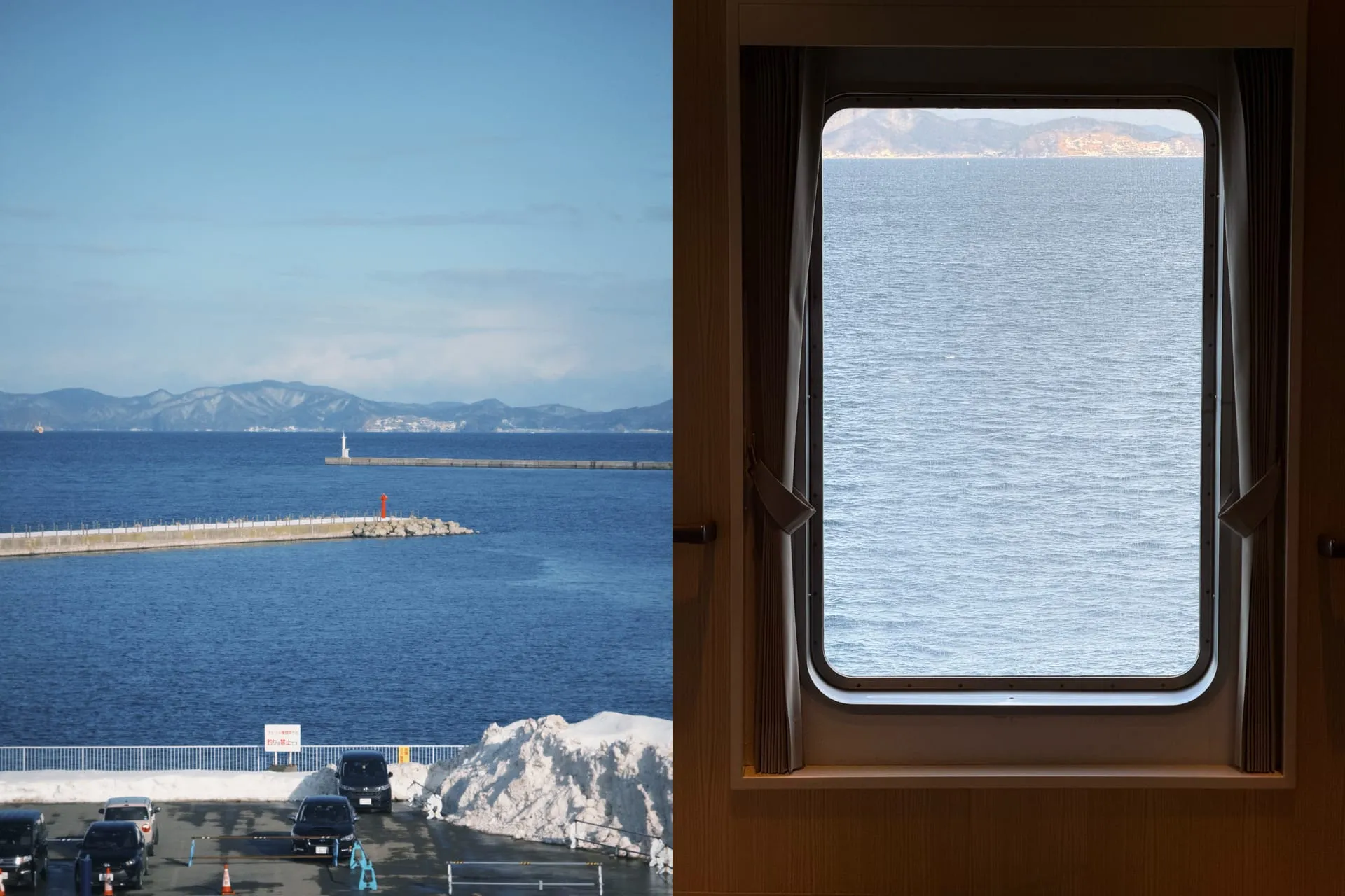 这一段选择了一个特殊的前往方式:轮渡。船上人很少,自由席基本上是很多个大通铺,我一个人占了一个,看了看海,又回去躺下睡了一觉,醒来时候窗外已经是深蓝色,感觉恍惚。
